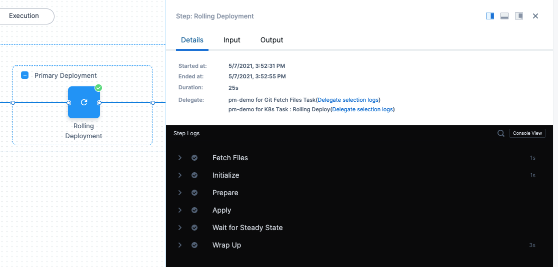 Since the Canary Deployment step was successful, it is no longer needed. The Canary Delete step is used to clean up the workload deployed by the Canary Deployment step. For more information, go to Canary Delete Step.