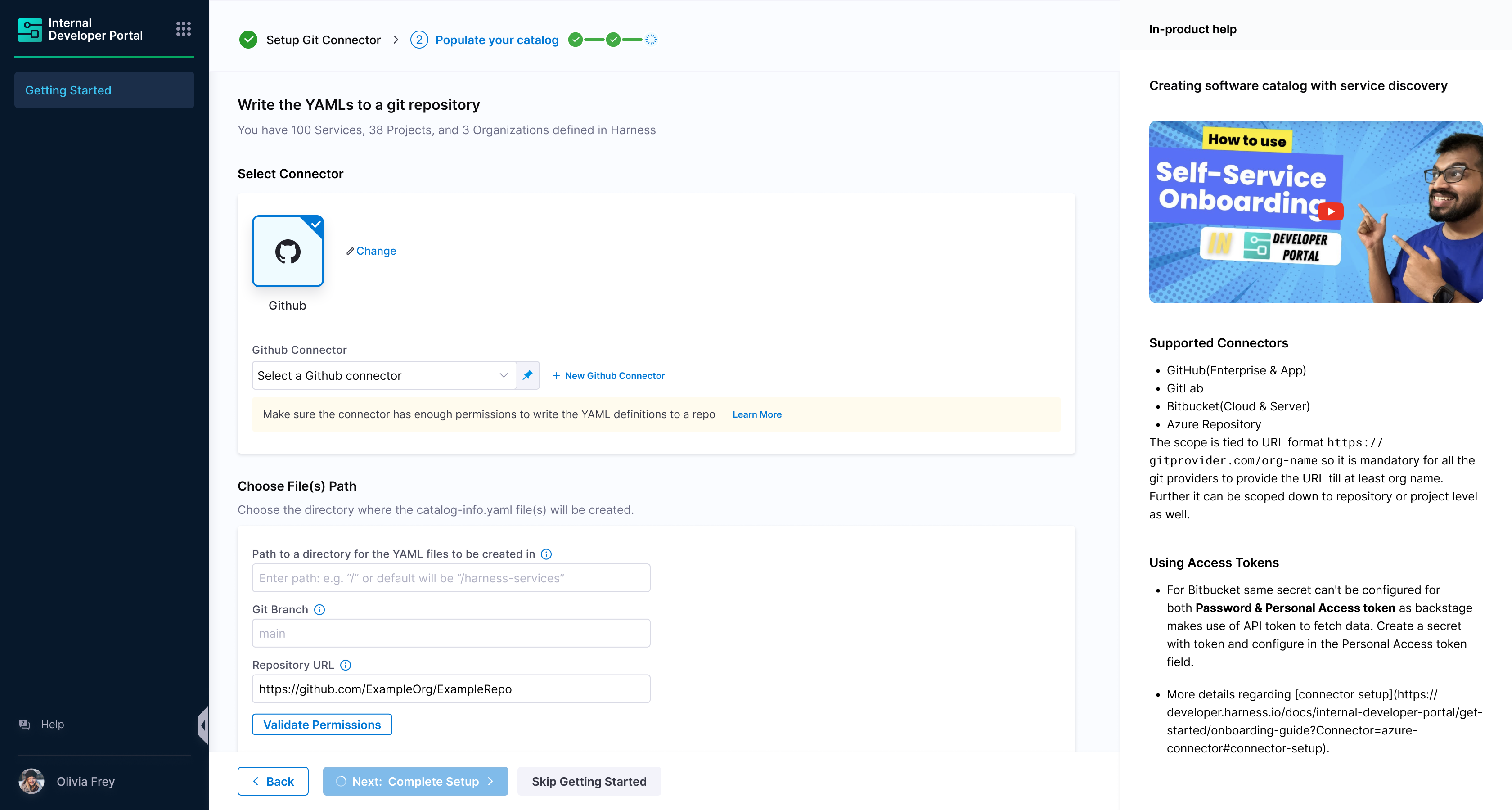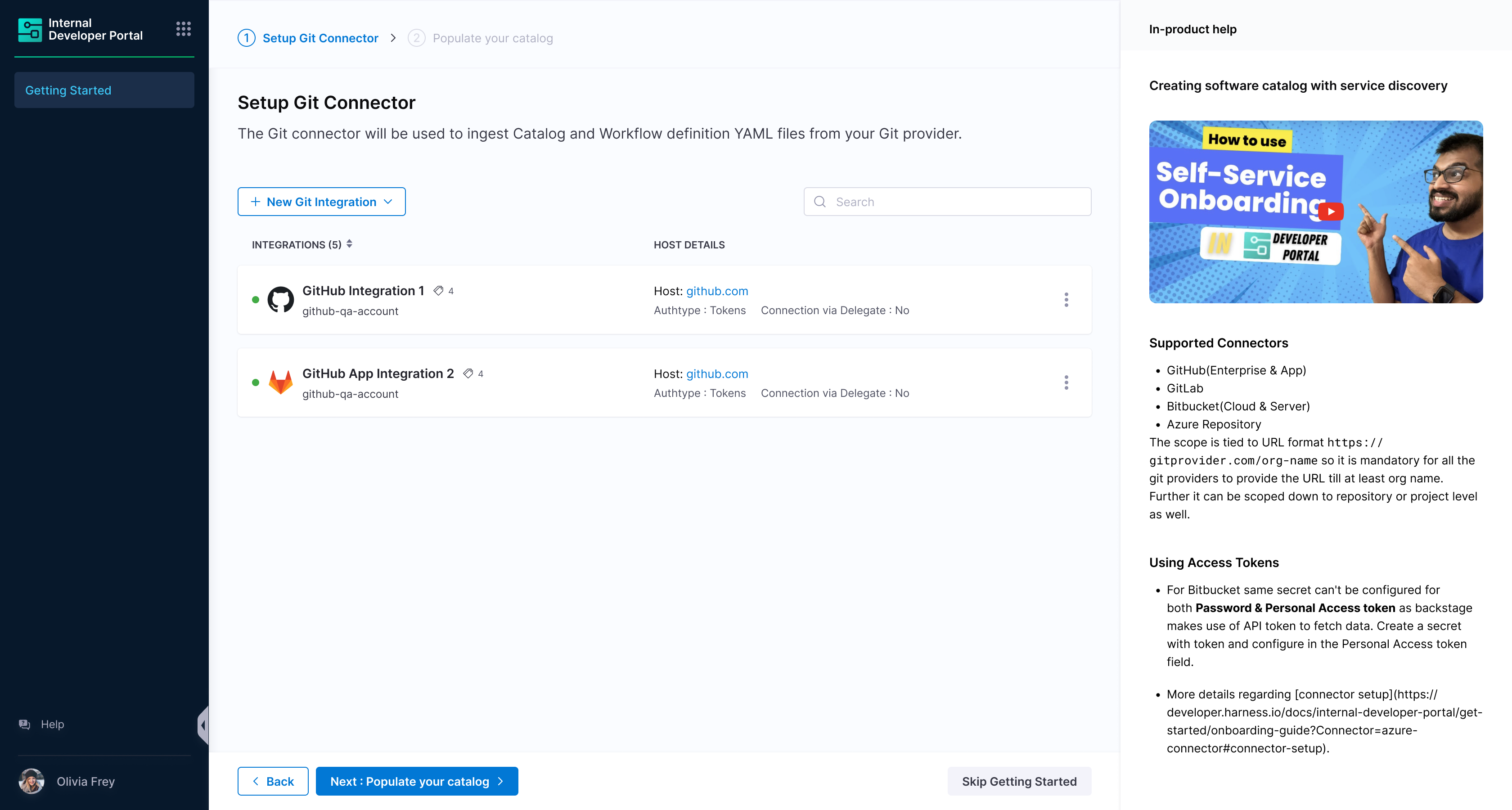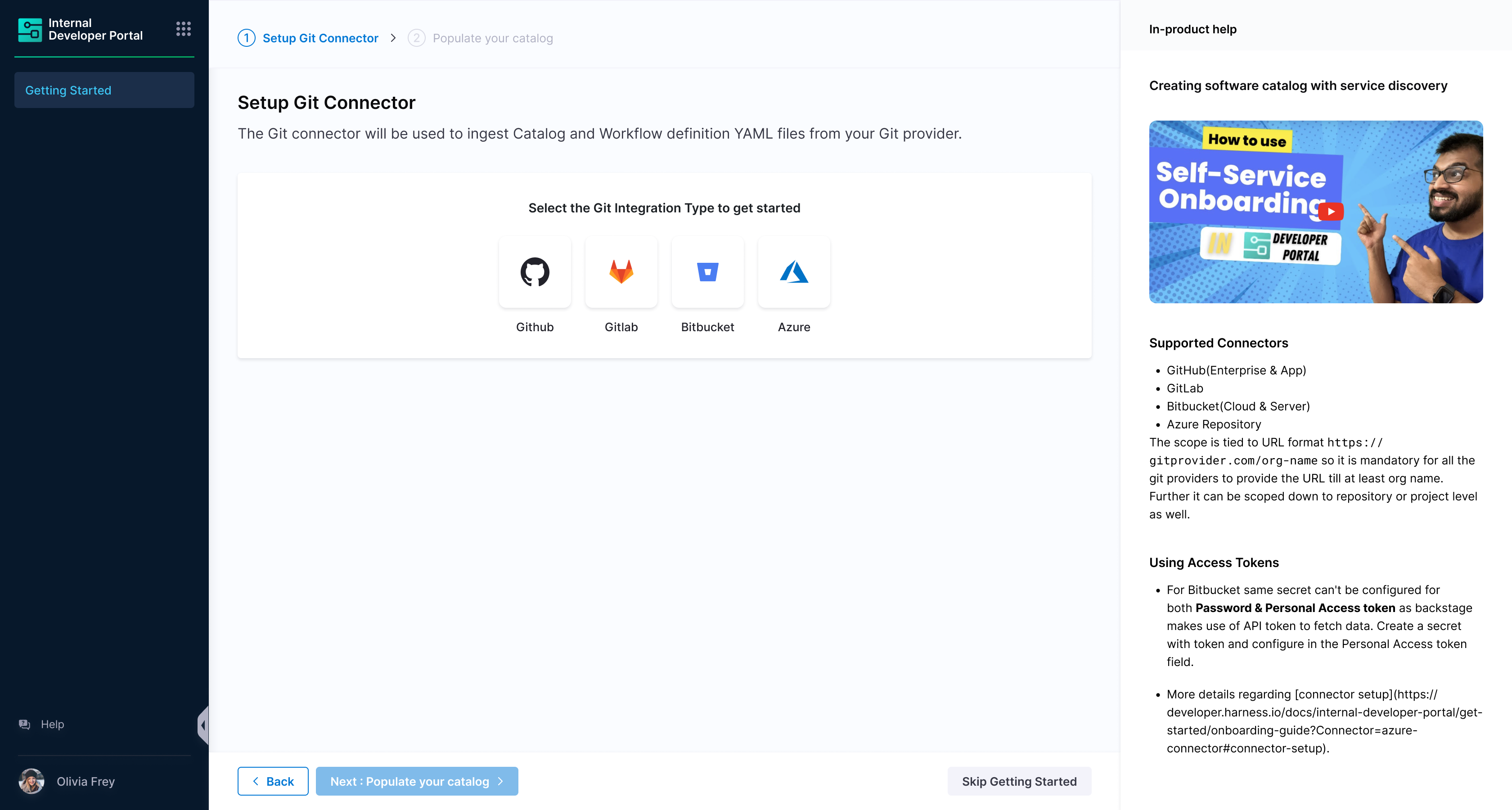 - Now that you're on the onboarding wizard, let's get started with setting up Git connectors to onboard the software components.