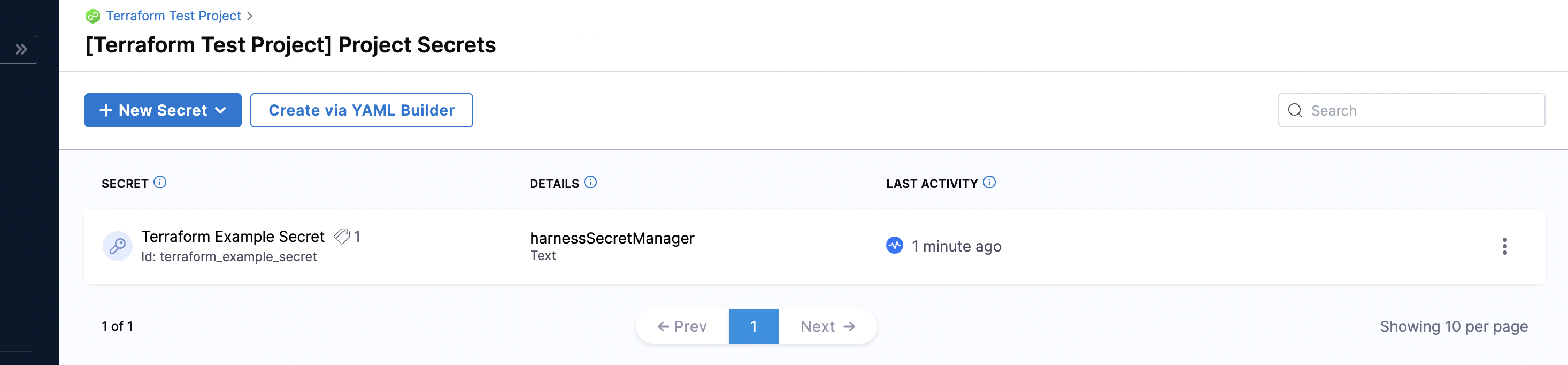 Your Text Secret now appears in the list of Secrets within the scope of your Project.