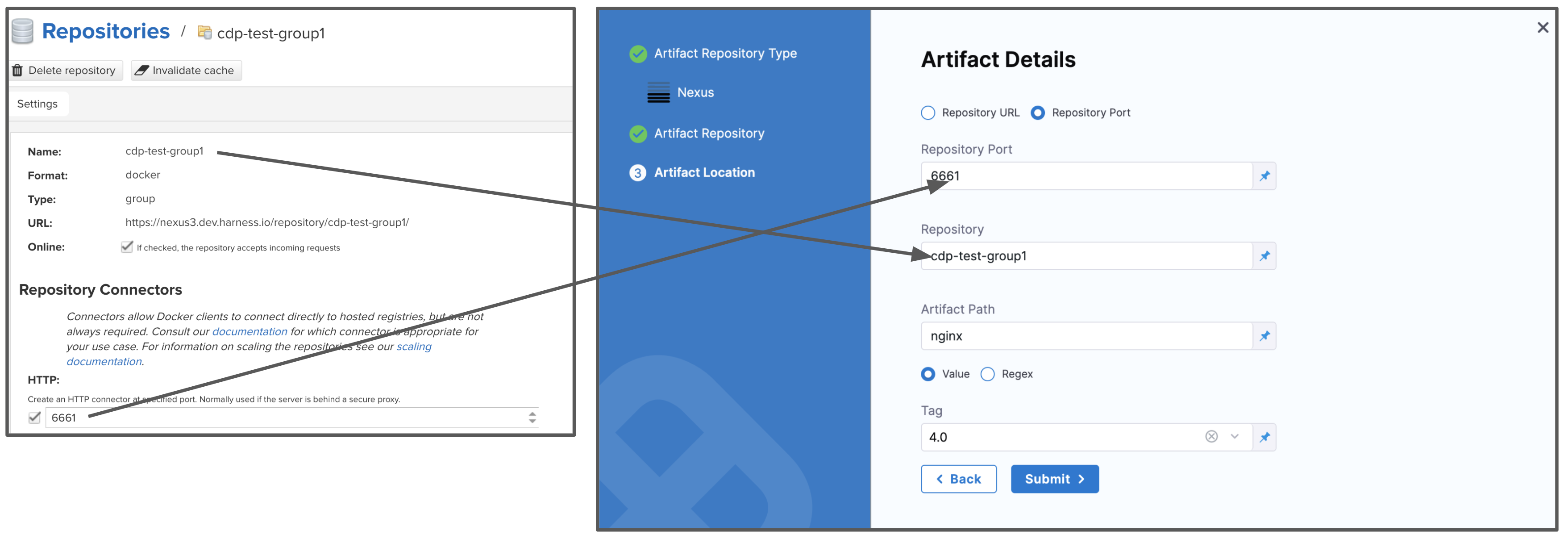 As a best practice, include the scheme and port. For example, https://your-repo:443. If you cannot locate the scheme, you may omit it. For example, your-repo:18080.